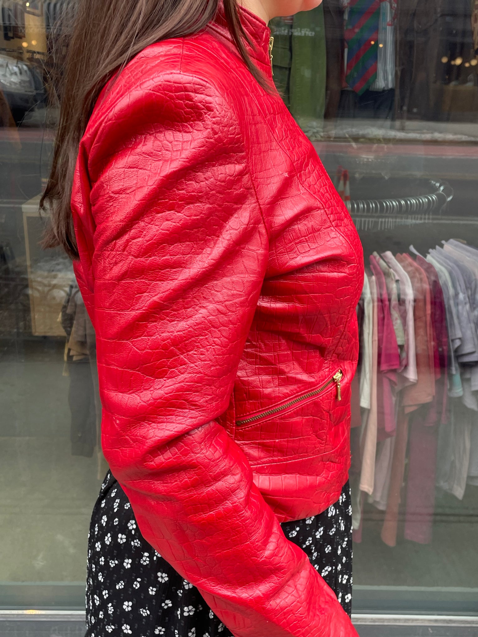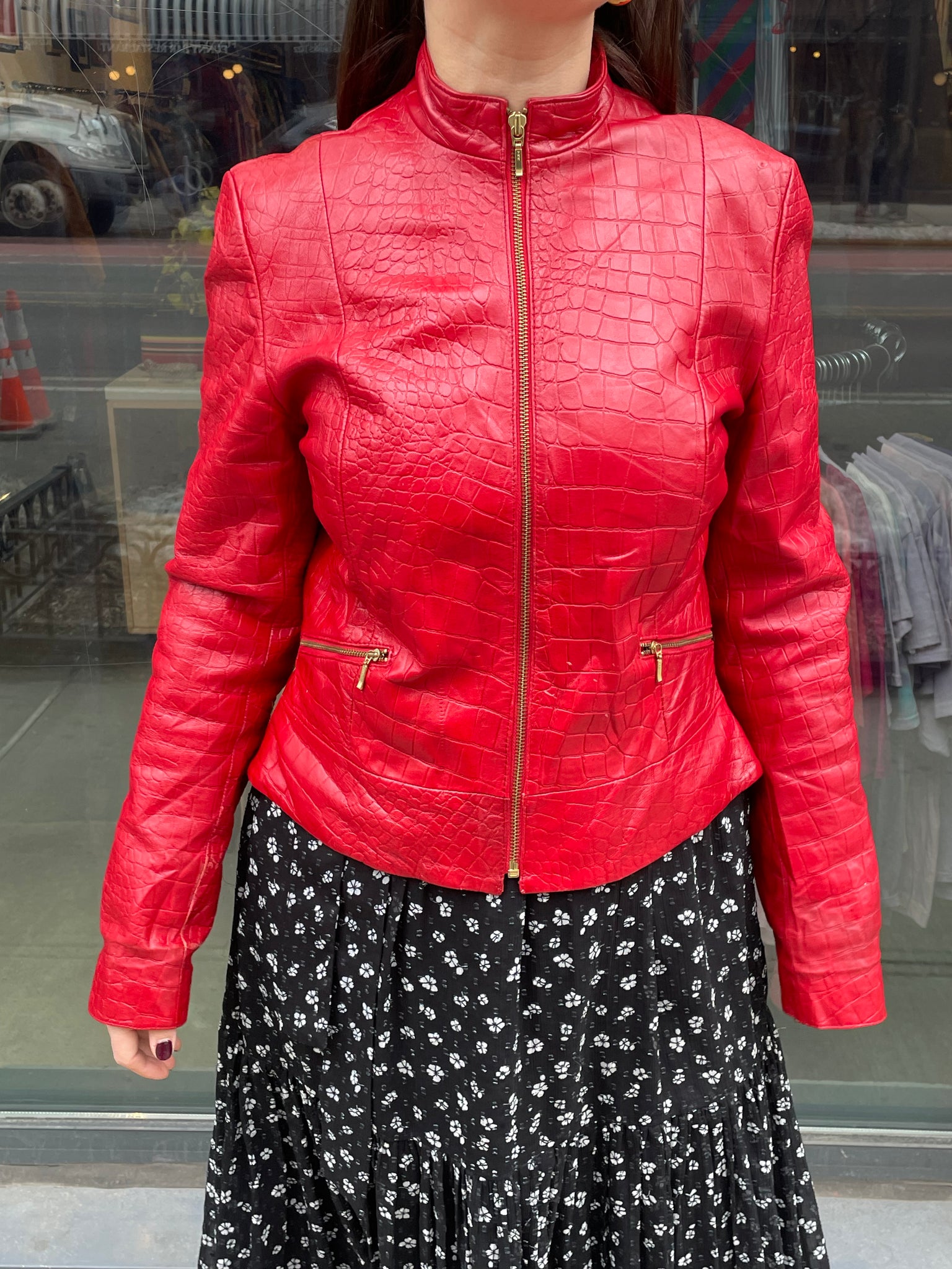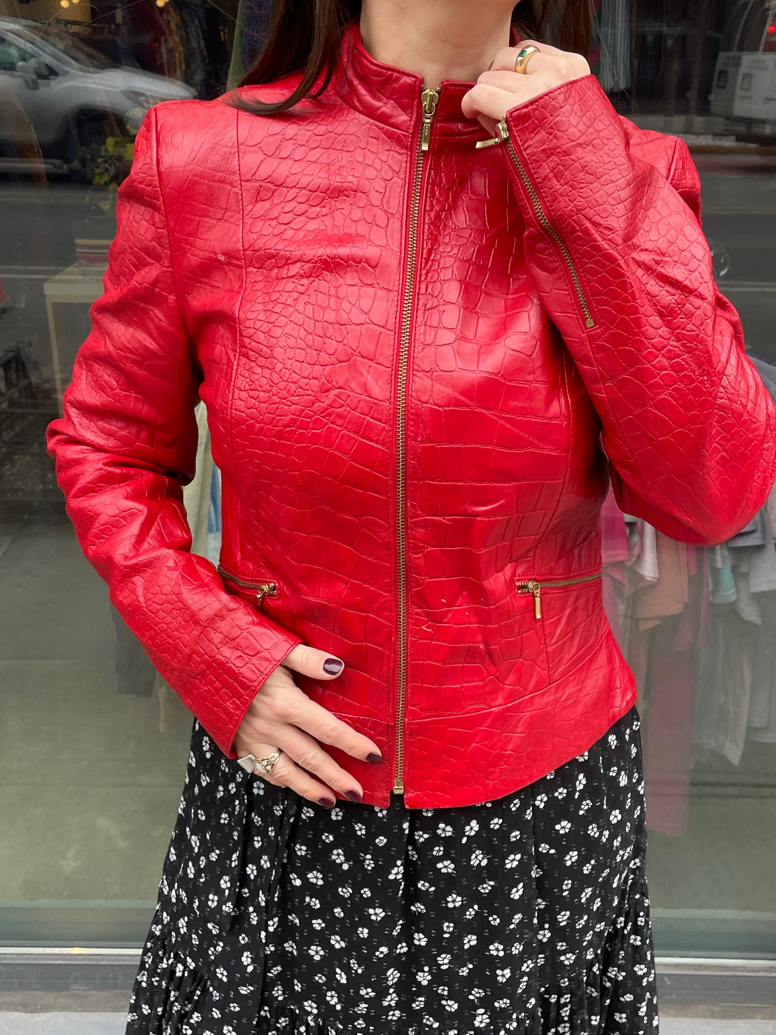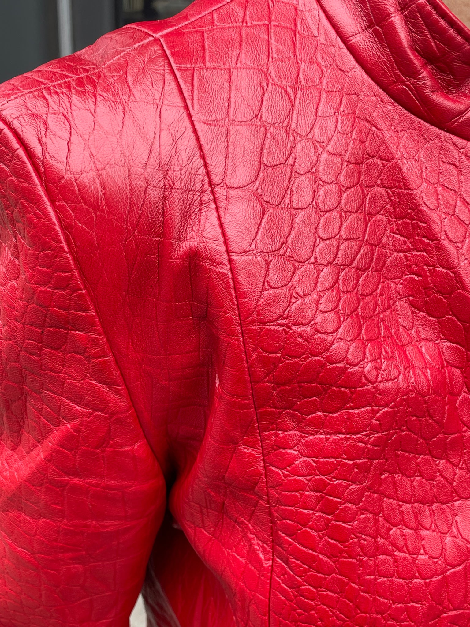 Red Genuine Leather Zip Up